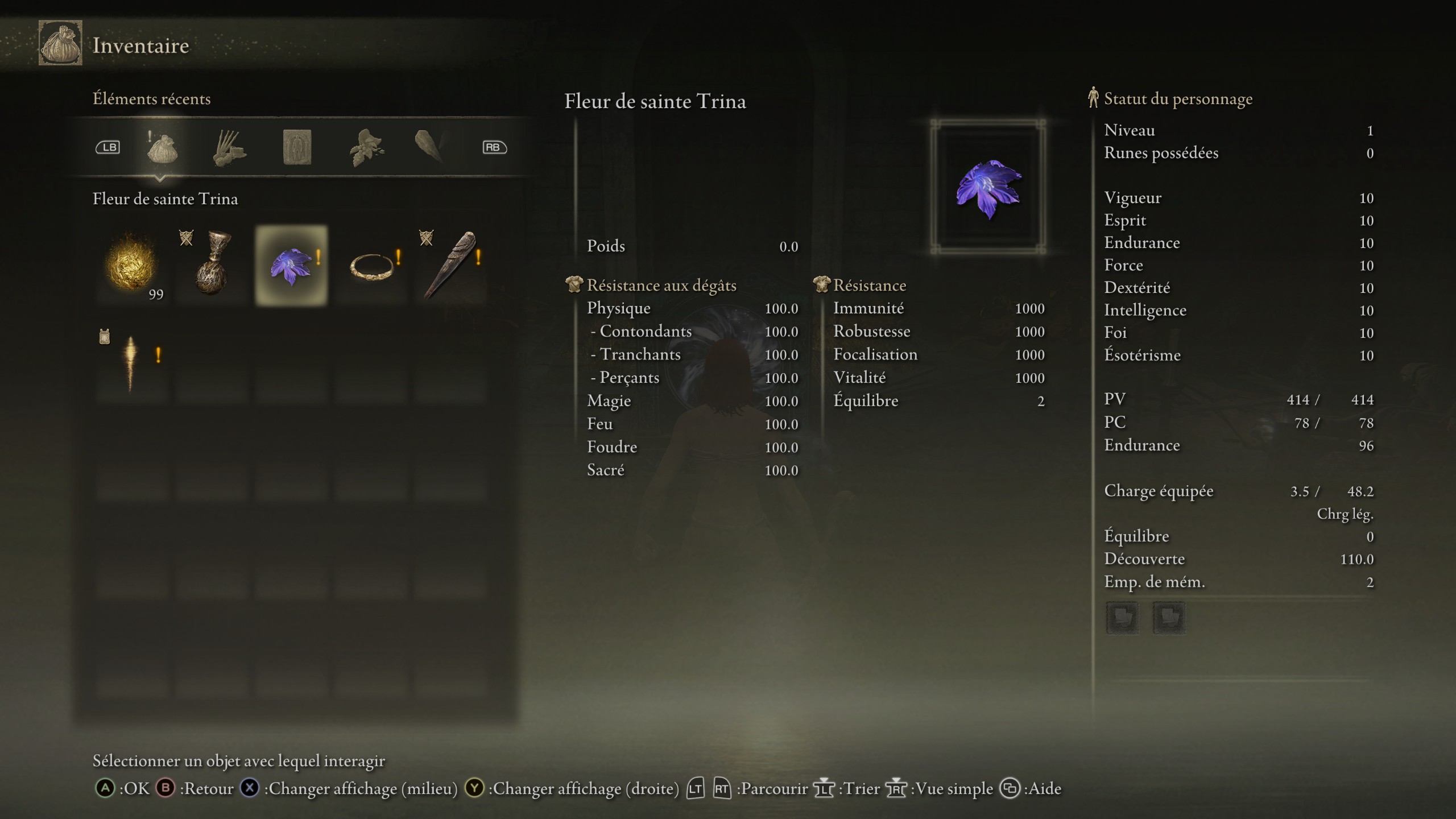 - Arme Indigent avec dégâts maxés (OS quasi tout le jeu)